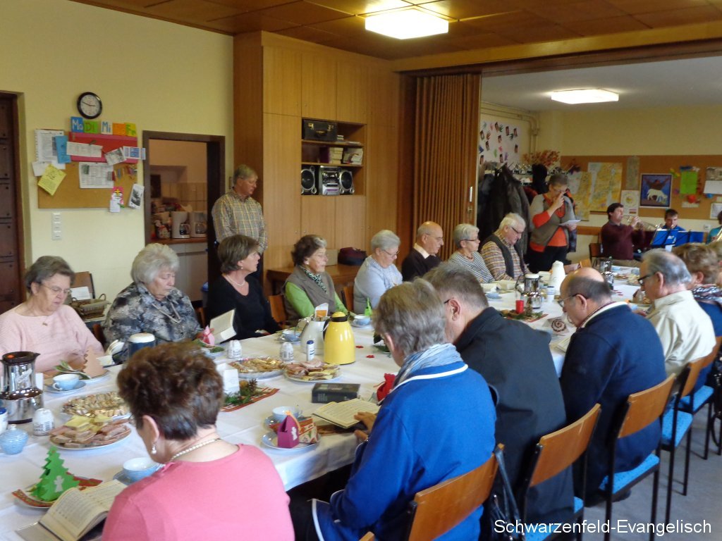 Dieses Jahr durften die Senioren an der Adventsfeier im Gemeinderaum den Liedern des Kirchenchores lauschen.